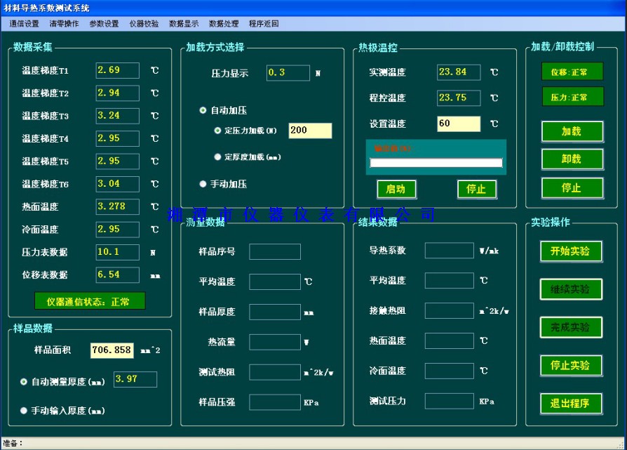 儀器特點(diǎn):自動加壓,自動測厚,實(shí)驗(yàn)全自動控制。6點(diǎn)溫度梯度檢測,提高測試精度。可檢測不同壓力下熱阻曲線,采用優(yōu)化的數(shù)學(xué)模型,測量材料導(dǎo)熱系數(shù)和熱阻以及界面處接觸熱阻等。